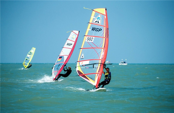 据了解,参加本次比赛有150余名选手,公司派出8名同学参赛,5男3女,9日正式开赛。分为红蓝两队进行比赛,碧海蓝天,千帆竞发,公司的帆板选手驾驭着帆板,时而跃上浪峰,时而跌入漩涡,场面惊险刺激。公司帆船队女子队员朱江林、郭丹萍面对曾经几届的帆板冠军,毫不畏惧,在海浪中尽情飞扬,勇夺场地赛女子公开级冠亚军。