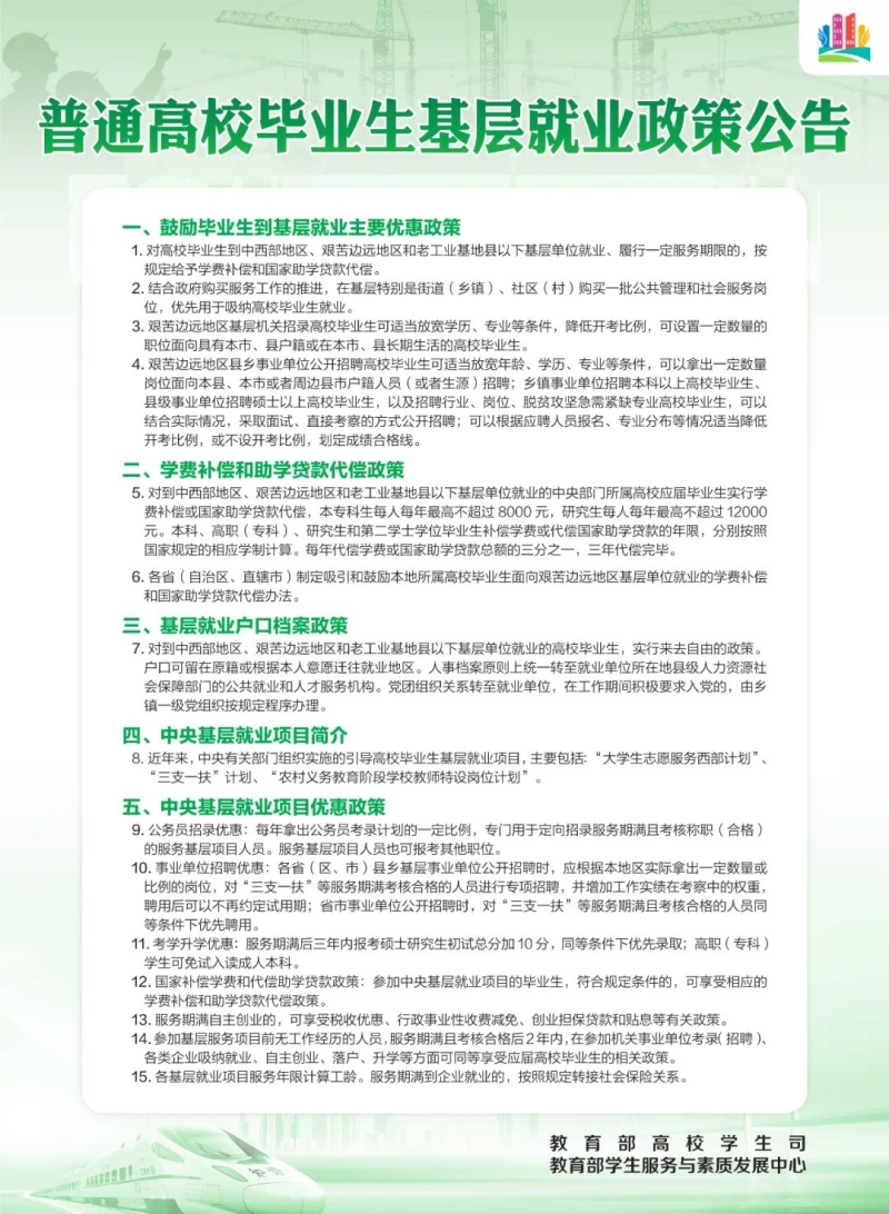 普通高校毕业生基层就业相关政策公告